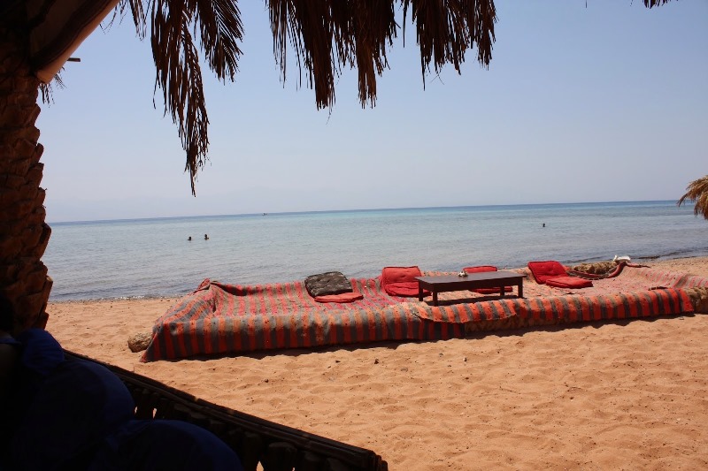 Пристигнахме вечерта, бедуините ни посрещнаха и ни настаниха в хижи от бамбук, разположени на пясъка, буквално на метър-два от водите на Червено море. В хижите, пригодени за двама човека, имаше само по един дюшек за спане, който през нощта изнасяхме пред самите хижи и спяхме на открито. В лагера ток имаше само вечер за час-два, но не се усещаше липсата му. Бедуините приготвяха изключително вкусната храна в гърнета под земята и хляб върху жар, през деня ни учеха да ловим риба в морето с шише и връв, да яздим камили и коне, но основно времето хората там прекарваха в разговори помежду си под една широка тента. А хората, които бяха в бедуинския лагер по това време, бяха от най-различни националности и с най-различни професии – IT мениджър в Google от Канада; банкер от Белгия; музикант от Чили и американец, които се бяха срещнали някъде, преди да дойдат в Египет, и бяха продължили да пътуват заедно; аржентинци, французи и т.н.