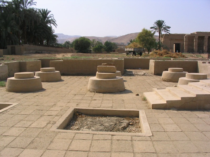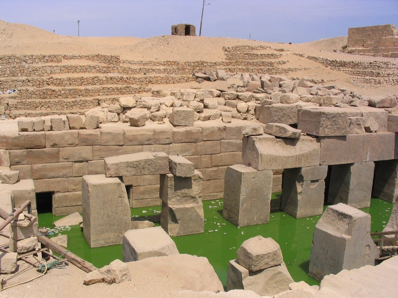 Записите на разкопките разкриват, че комплексът изглежда разкопан в недокоснати компактни чакълести отлагания и не е намерен никакъв материал, предхождащ по време 19. династия. Името на Сети I дори се появява върху прилепващи скоби, използвани за съединяване на масивните гранитни блокове на централната зала. Възможно е Сети да иска да постигне ефекта на древния архитектурен стил, който да даде автентичност на опита му за пресъздаване на гроба на Озирис в границите на храма му. Дори се предполага, че самият храм също има някои елементи на царските погребални паметници от Старото царство – разположението му с многобройни светилища и връзката му с покрития с могила празен гроб, точно както погребалният храм е бил разположен на източната част на пирамидата.