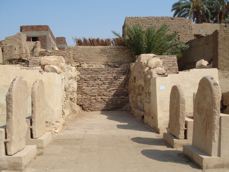 „Що се отнася до Дома на Менмаатре, предната и задна част бяха в процес на строеж, когато той влезе в небето (т.е. почина). Архитектурните елементи не бяха завършени, колоните не бяха издигнати на тяхната тераса, а неговото култово изображение лежеше все още на земята, не беше все още завършено като божествен образ в Дома на златото. Жертвите за него бяха прекратени, както и неговите служители също (т.е. няма служители).”