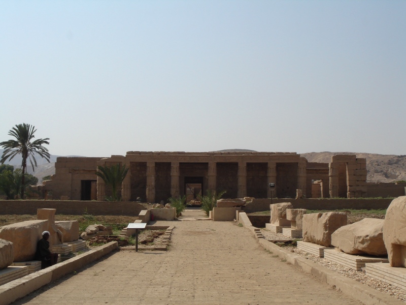 Основната сграда на храма е с размери 45 x 52 м. Вътрешните части на храма – портикът, хипостилната зала и вътрешните помещения, са изградени от пясъчник и са сравнително добре запазени. От външната стена и двата пилона, изградени от тухли, не е съхранено почти нищо в първоначалния вид. Вероятно двата пилона са завършени след смъртта на Сети I, изградени главно от неизпечени тухли с явния стремеж строителството да бъде завършено в най-къси срокове. Качеството на строителния материал довежда и до бързото унищожаване на пилоните и оградата на храма от многобройните наводнения в тази област. В коптския период северната част на храма се превръща в църква, като строителният материал се използва повторно за новите постройки, а мястото около църквата се заселва.