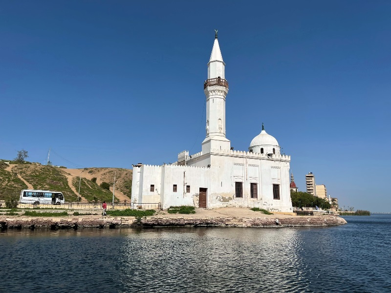 Джамията Абу Мандур, разположена на брега на Нил, е особено впечатляваща. Докато пътуваме към нея с лодка по Нил, наблюдаваме отстрани къщите и джамиите.