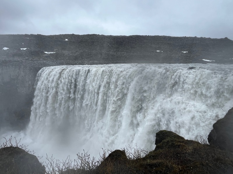 Пътят за Акурейри минава покрай езерото Myvatn, заобиколено от горещи извори. То е чудесна спа-дестинация, но нямахме време за дълга почивка и след няколко кадъра и кратка разходка продължихме към Dettifoss – поредния величествен водопад. Пътувайки към мястото, отбелязано в навигацията, по нищо не личеше, че там се крие такова съкровище. Далеч напред пейзажът беше равнинен, само в далечината се виждаше пара, която единодушно решихме, че е геотермална зона – обичайна гледка за Исландия. Спряхме колата на обозначения паркинг и все още недоумявахме къде се намира водопадът. Само на няколко пешеходни минути се откри поразителна гледка: каньон и изливащ се мощен водопад, който изхвърля нависоко облак водни капки (което оприличихме на гореща пара). За секунди от най-близката тераса за наблюдение можеш да станеш вир вода. През зимата това място е затворено, защото водните капки много бързо се превръщат в ледени иглички и е опасно за посетителите.