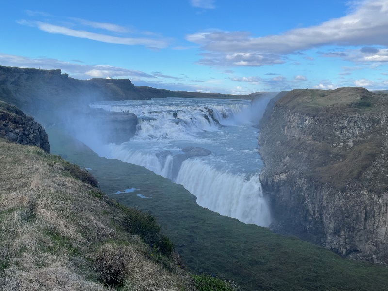 Денят приключи с впечатляващия водопад Gullfoss, разположен в каньона на река Hvítá. Gullfoss означава златен водопад. Ако се посети в слънчево време, светлината се заиграва с милионите водни капчици, носещи се във въздуха, и създава усещане за летящи златни прашинки.