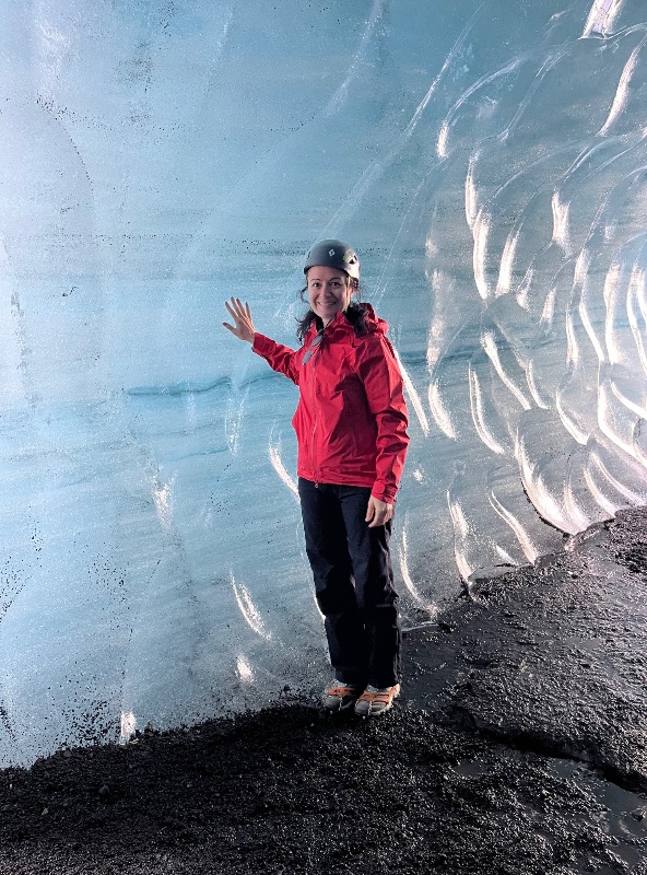Нощувахме в Селфос и на следващия четвърти ден тръгнахме към поредното приключение с крайна точка Вик. „Вик“ на исландски означава бряг и неслучайно тази дума се съдържа в повечето имена на градчета. По пътя не пропуснахме да разгледаме няколко водопада. В Исландия водата има основно ледников произход и се лее навсякъде. Енергията се добива 100% от природни източници: вода и топлината, идваща от недрата на земята. Вик беше отправна точка за посещението на ледена пещера в района на вулкана Katla. Katla е временно затихнал вулкан, покрит с гигантска ледена шапка. Той е значително по-масивен от събрата си Eyjafjallajökull (т.нар. Е15 или Е, последвано от 15 букви), който изригна през 2010 г. и създаде хаос във въздушното пространство на Европа. Когато се пробуди следващия път, Katla ще изпрати в атмосферата колосално количество прах, примесен с водна пара. За щастие по време на нашето пътуване всичко беше спокойно, а времето – прекрасно, с температура около 15-16 градуса – истинско лято за местните хора. С малка група изследователи, водени от местен гид, се отправихме към ледената пещера. Докато стигнем до изходната точка, преминахме през полета застинала лава – обичаен пейзаж в Исландия. За разлика от повечето други ледници на земята, голяма част от исландските са примесени с черен прах, натрупан при вулканичните изригвания. Това много ясно може да се види в сърцето на пещерата, която представлява тунел, естествено прокопан в леда. По цялата височина на ледените стени се редуват ивици с черен прах и магично син лед – застинала снимка на векове вулканична история. Близо до пещерата се срещнахме и с полярна лисица – един от малкото естествени животински обитатели на Исландия. Повечето животни са пренесени там от континента, включително традиционните овце. Хитрушата се беше научила да отмъква лакомства от туристите и съвсем целенасочено се навърташе около изходния пункт.