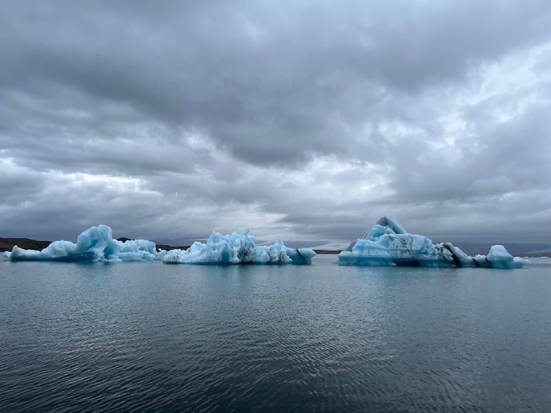 Докато предишните дни заснежените планински върхове бяха повече мираж, в този ден навлязохме все по-дълбоко в суровата и мразовита част на Исландия. Отбивки за „среща“ с ледници се редуваха една след друга по пътя. Така успяхме да видим Svinafellsjokull. Jokull на исландски означава ледник. Там за първи път видяхме съвсем отблизо как леденият език на гледчера се спуска в ниското. Но още по-завладяващ се оказа Jökulsárlón. Jökulsárlón е езеро, в което се откъсват айсберги от близкия ледник и поемат своя път към океана. Те не са така масивни и страховити, както в епичните кинопродукции, но са също толкова впечатляващи. Туристически агенции предлагат обиколка с лодка около айсбергите, но ние предпочетохме да се разходим по брега и да ги наблюдаваме отдалеч. Изживяването и така беше достатъчно силно. Показа ни се и тюленче, което се гмуркаше в ледените води на езерото.
